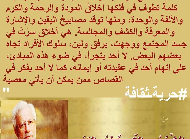 بانتخاب “الحب”، بما هو مفتاح الحياة وسر الوجود، أعطى التصوف للمجتمعات العربية والإسلامية مبادئ أخلاقية، تعالج من أمراض التعصب والحقد والكراهية. كلمة تطوف في فلكها أخلاقُ المودة والرحمة والكرم والألفة والوحدة، ومنها توقد مصابيحُ اليقين والإشارة والمعرفة والكشف والمجالسة. هي أخلاق سرَتْ في جسد المجتمع ووجهت، برفق ولين، سلوك الأفراد تجاه بعضهم البعض. لا أحد يتجرأ، في ضوء هذه المبادئ، على اتهام أحد في عقيدته أو إيمانه، كما لا أحد يفكر في القصاص ممن يمكن أن يأتي معصية.